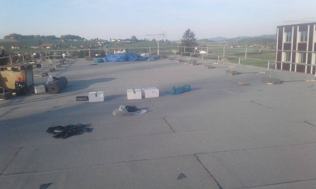 Marcel Boschung AGSchmittenObjekt: Teilsanierung Gewerbehallendach Fläche: 990 m2 Material: PIR Isolation, Elastomerdichtungsbahnen Spezialiät: Aufisolierung hinsichtlich Fördergelder Gebäudeprogramm Ausführungszeitraum: Mai bis Juli 2018