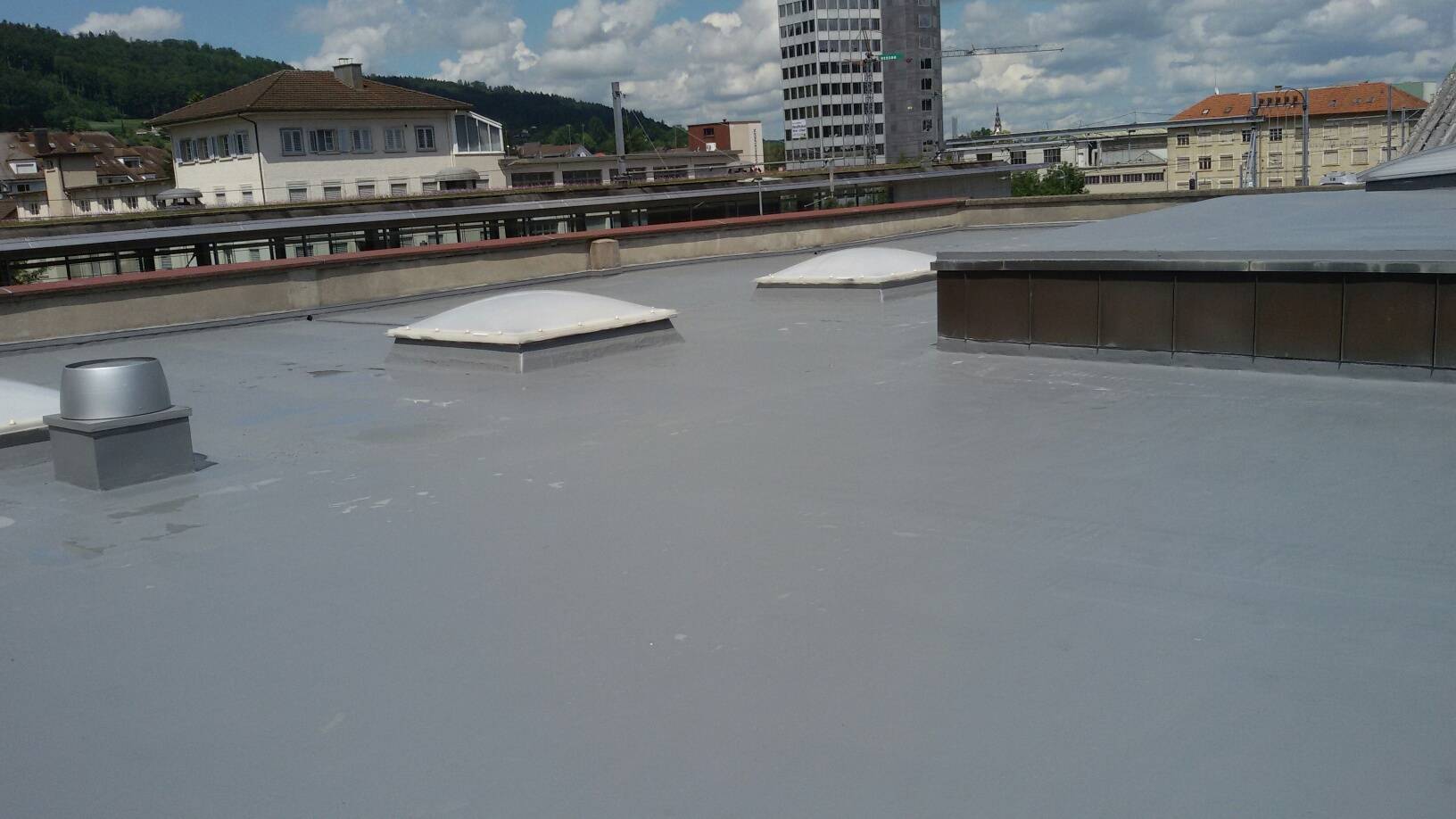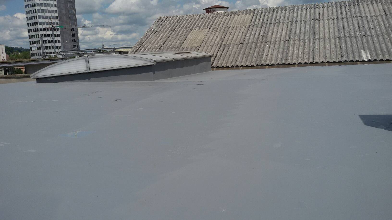 Metallwalzwerk AGMenzikenObjekt: Abdichtungsarbeiten Industriehallendach Fläche: 550 m2 Material: Flüssigkunststoff HAGMANS AQUABARR Spezialiät: vollarmierte Abdichtung bestehendes Gussasphaltdach inkl. Aufbordung Ausführungszeitraum: Mai bis Juni 2018